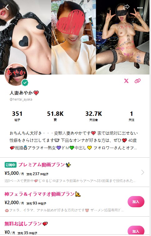 myfans人妻あやか@hentai_ayaka自行订阅视频合集237部,5000日元订阅,价值RMB242元,视频日期截止2025年3月30日,这个资源有不少会员在找,本站独家订阅。